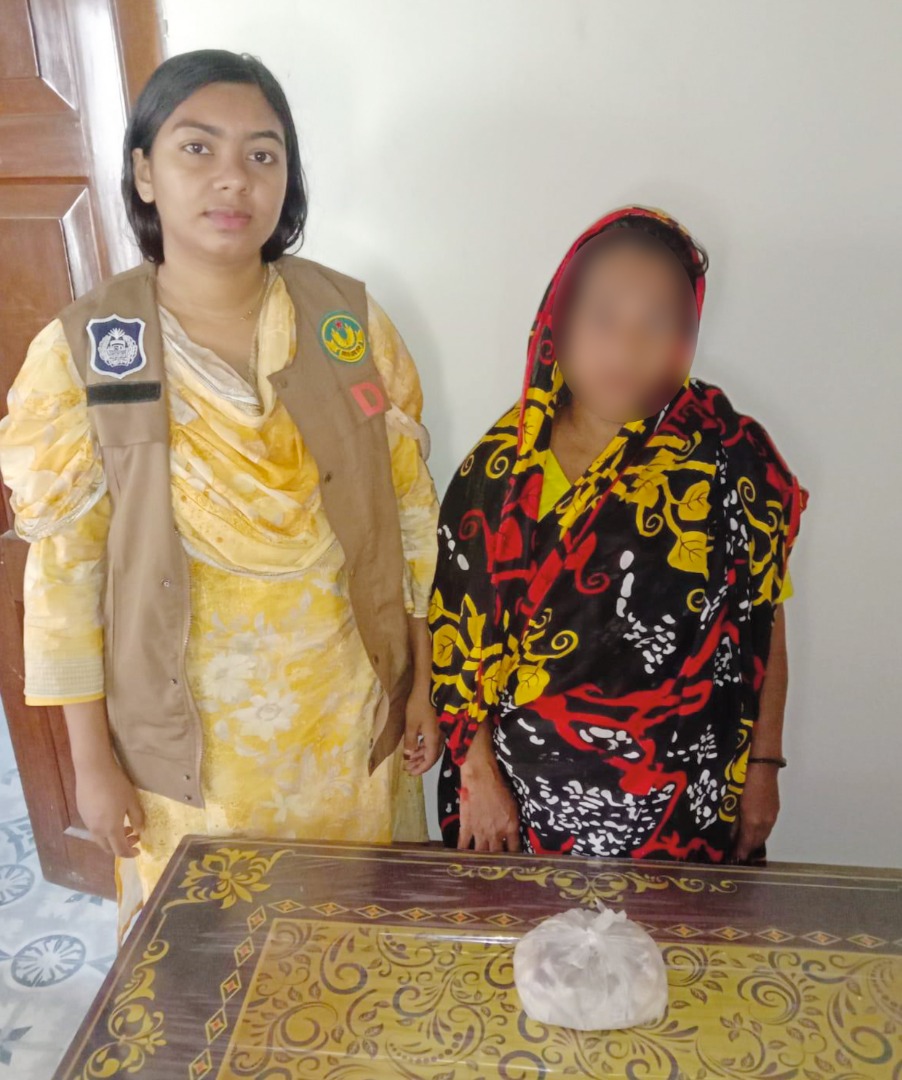 গ্রেপ্তারকৃত আসামি মোসা: নাসিমা বেগম (৪৮) রাজশাহী মহানগরীর মতিহার থানার চরশ্যামপুর এলাকার মো: আবুল কালামের স্ত্রী।
