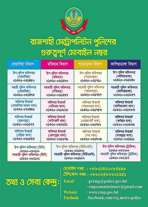 গুরুত্বপূর্ণ মোবাইল নম্বরসমূহ